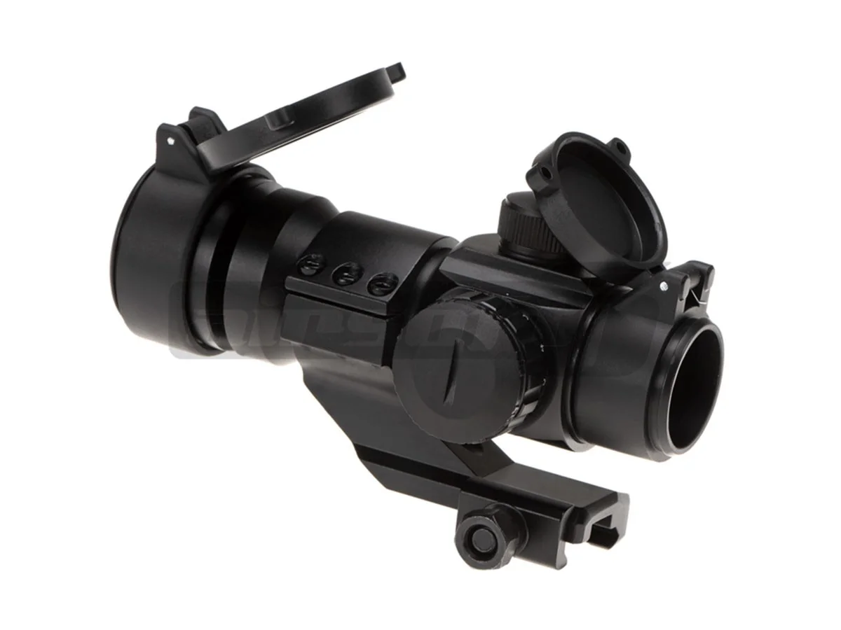 Dispozitiv electronic pentru tintire ce replica modelul Aimpoint Comp M3. Tinta acestui dispozitiv poate fi verde sau rosie in functie de necesitate. Deasemenea si intensitatea poate fi reglata. El functioneaza cu baterie de tip CR2032. Autonomia sa este buna avand in vedere bateria utilizate. Este fabricat din aluminiu rezistent iar prinderea inclusa in pachet este inalta.
