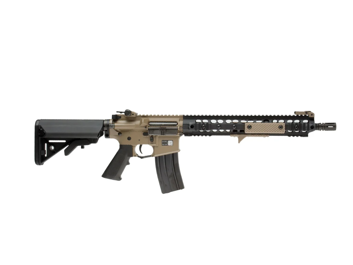 Daca mereu ai privit replicile de airsoft electrice cu un oarecare dispret, datorat lipsei reculului, te invitam sa incerci replicile Bolt. B4 SR16 Tan iti va oferi un recul greu de imaginat pentru o replica electrica. Constructia full metal, finisajele si marcajele Knight's Armament iti vor face inima sa tresara la fiecare apasare a tragaciului - sau poate reculul. Cu ajutorul tevii interne de 6.01 si a camerei de hop reglabile vei reusit sa dobori "munti" la distante apreciabile. Doar sa nu fii curios sa iti tragi in picior, are 125 m/s cu bile de 0.20g.