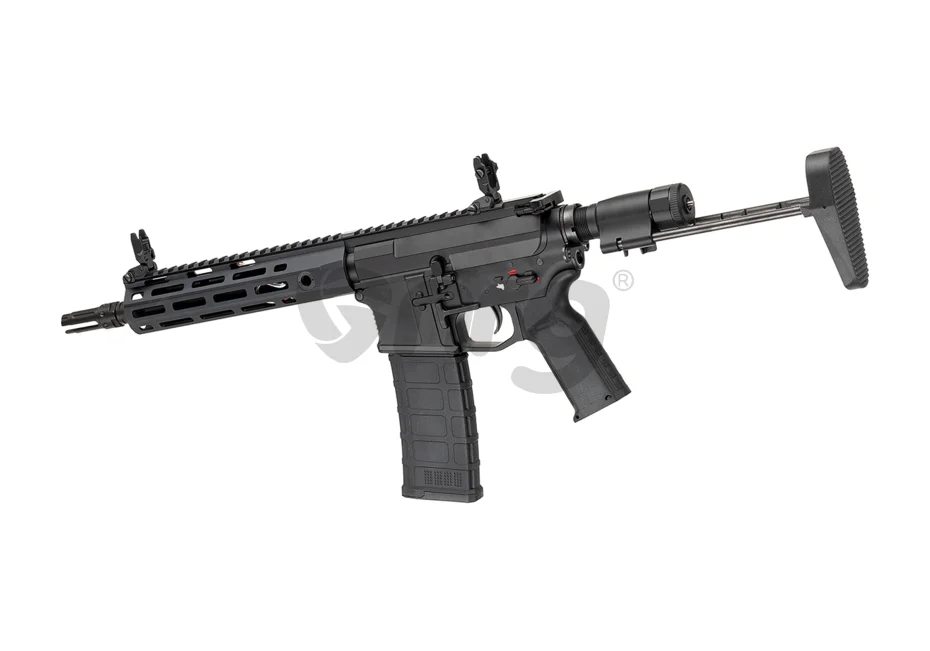 In pachetul replicii de airsoft nu este inclus un acumulator si nici un incarcator pentru acumulator. Se recomanda utilizarea unui acumulator de 9.6V care poate fi montat in partea frontala, va recomandam atasarea unei cutii de tip peq pentru depozitarea acumulatorului. Nu se recomanda utilizarea unui acumulator mai mare de 11.1V deoarece replica de airsoft se poate defecta. Se recomanda utilizarea bilelor de calitate cu greutatea de 0.25g pentru rezultate optime.
