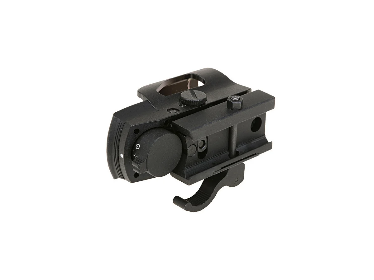 Un sistem de ochire avansat ce permite tintirea mult mai usor decat clasicele catari integrate. Este fabricat din aluminiu usurand astfel mult greutatea ansamblului si totodata oferind o buna rezistenta. In partea frontala se poate observa geamul reflector mascat de constructia din metal pentru protectie.