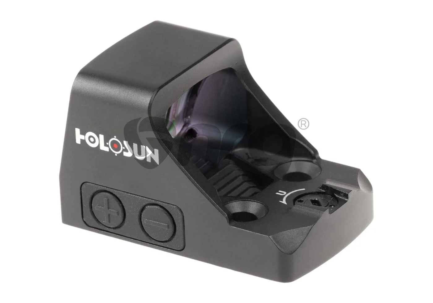 Dot Sight cu tinta de culoare verde de dimensiuni compacte, realizat de Holosun. Prelucrat CNC din aluminiu 7075-T6 cu acoperire neagră mat, acest vizor de dimensiuni compacte cântărește 30 g.