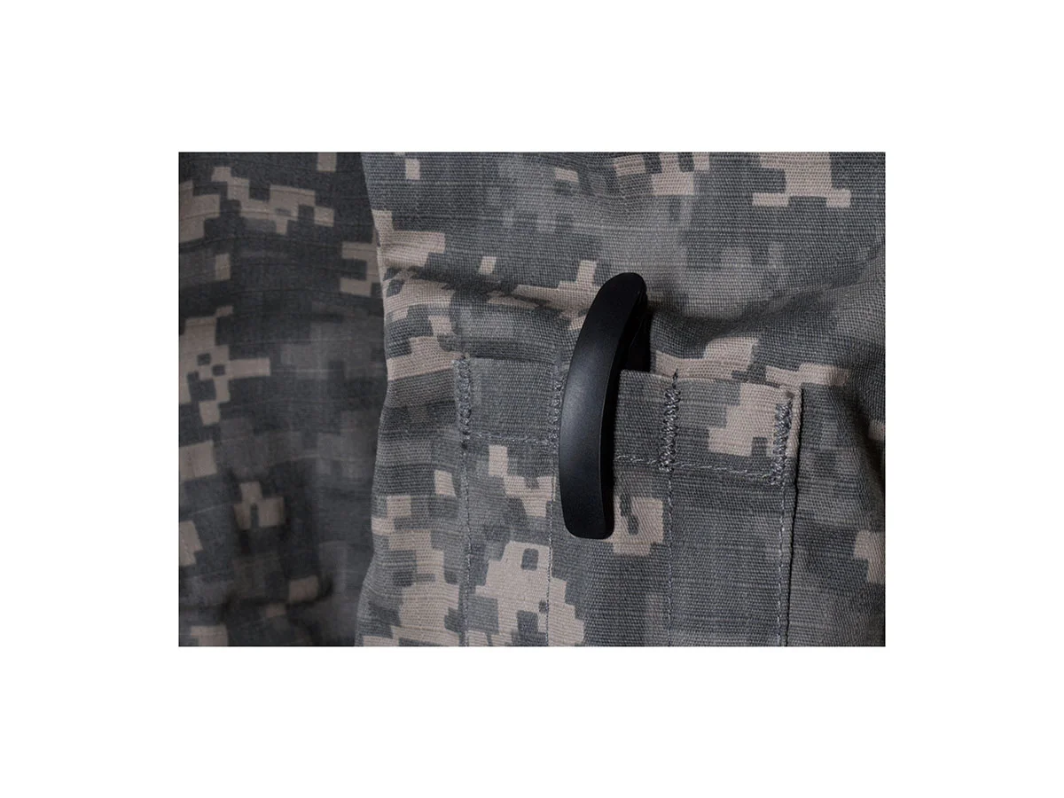 In zona pieptului si a umerilor exista sectiuni prevazute cu arici pentru a putea atasa legitimatii sau patch-uri. Zona coatelor este ramforsata cu material pentru a preveni uzura iar tot in ramforsare exista un spatiu destinat protectiilor suplimentare.