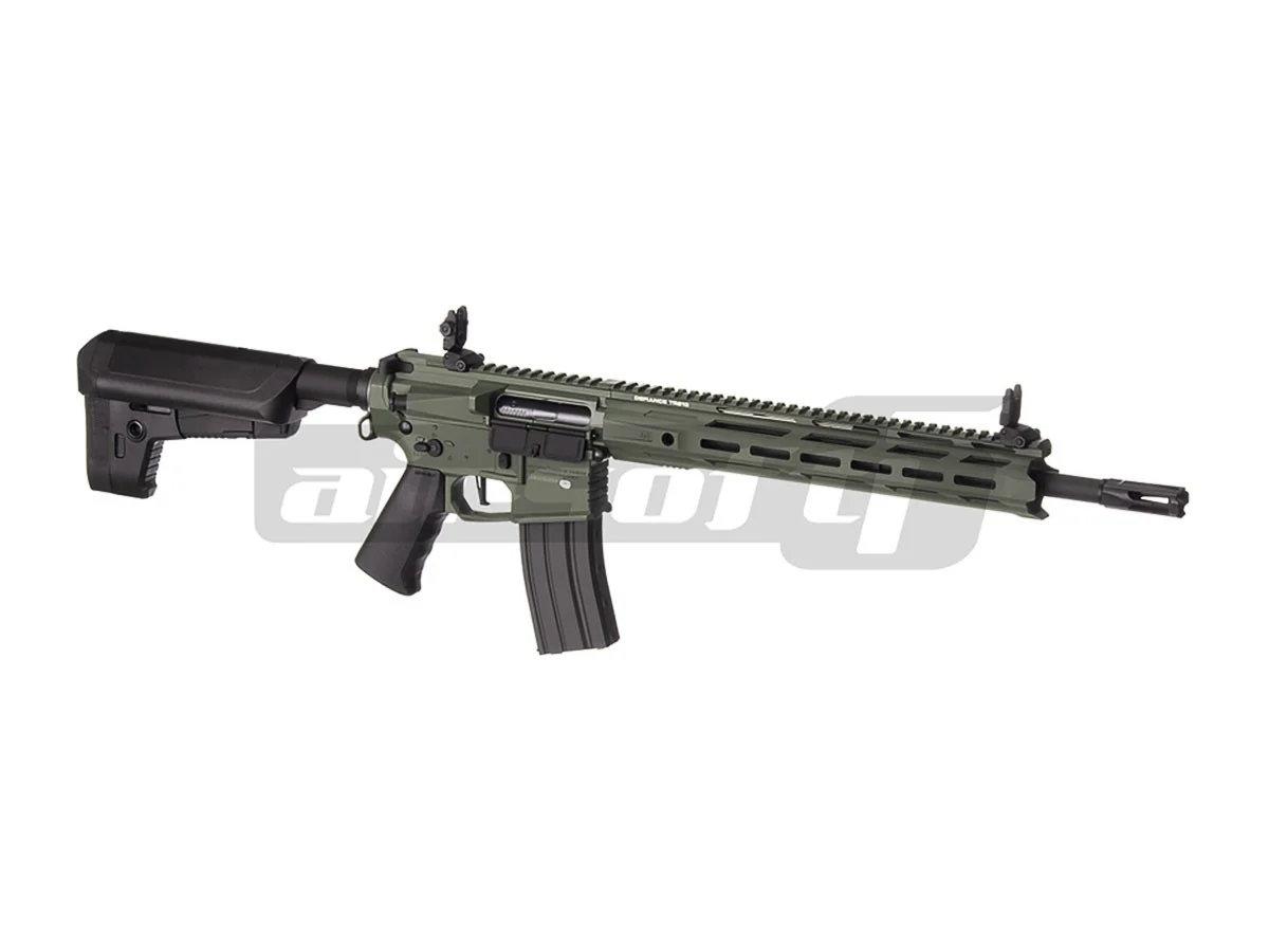 Modelul de fata se numeste Trident SPR MK2 si este destinat atat luptelor in spatii restranse cat si in spatii deschise. Lungimea totala a replicii cu patul extins este de 945 mm, clasand-o in categoria medie spre lunga. Este fabricata din aliaje de aluminiu, contribuind la scaderea semnificativa a greutatii, imbunatatind mult manevrabilitatea. Greutatea replicii este de 2500. Sistemul frontal este unul de tip M-Lok astfel nu va incomoda in mod inutil cu sine, atunci cand nu va fi necesar. Pe toata partea superioara a replicii exista o sina standard pe care vor putea fi montate catarile clasice sau un sistem avansat de ochire. Corpul replicii reprezinta partea interesanta a acestei versiuni datorita elementelor moderne, menite sa imbunatateasca atat estetic cat si practic placerea de a detine si exploata o astfel de replica. Deasupra manerului exista un sistem de prindere ambidextru pentru cureaua de sustinere. Manerul prezinta un design nou, menit sa imbunatateasca prinderea. Selectorul de tir este deasemenea ambidextru si cam atat pentru stangaci. Mag catch-ul este pe partea dreapta. Patul replicii prezinta un design propriu, elegant, ce va permite inmagazinarea unu acumulator tip crane. Patul este reglabil cu 6 pozitii.
