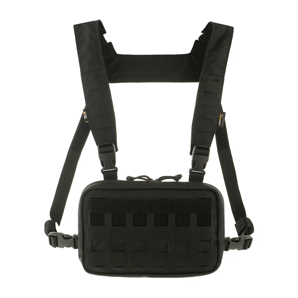 M-Tac Chest Rig Elite combina confortul si versatilitatea. In interiorul buzunarului exista un organizator care va permite sa plasati in mod rational articolele necesare. Camera interioara a buzunarului este inchisa cu fermoar si constituie un buzunar mare. Designerii au reusit sa realizeze combinatia de succes dintre un buzunar de piept si un Chest Rig. M-Tac Chest Rig Elite este echipat cu un panou frontal MOLLE Laser Cut si sistem de eliberare rapida Fastex. Cu ajutorul insertiilor modulare prinse cu Velcro, poti extinde semnificativ functionalitatea buzunarului, folosindu-l pentru setul tau EDC, ca portofel sau geanta pentru documente.